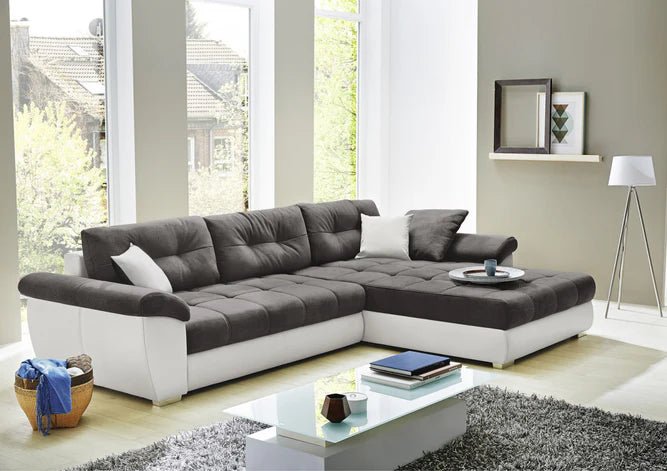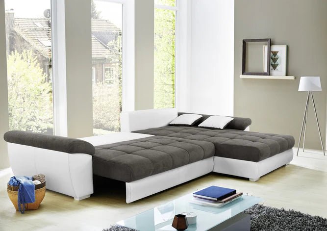 Jó hír, hogy az Amira nagy sarokkanapé ágyazható is: a hosszanti rész háttámláját ledöntve kapjuk meg a fekvőfelületet. Ennek mérete: 270 x 145 cm, azaz két ember számára tökéletes.