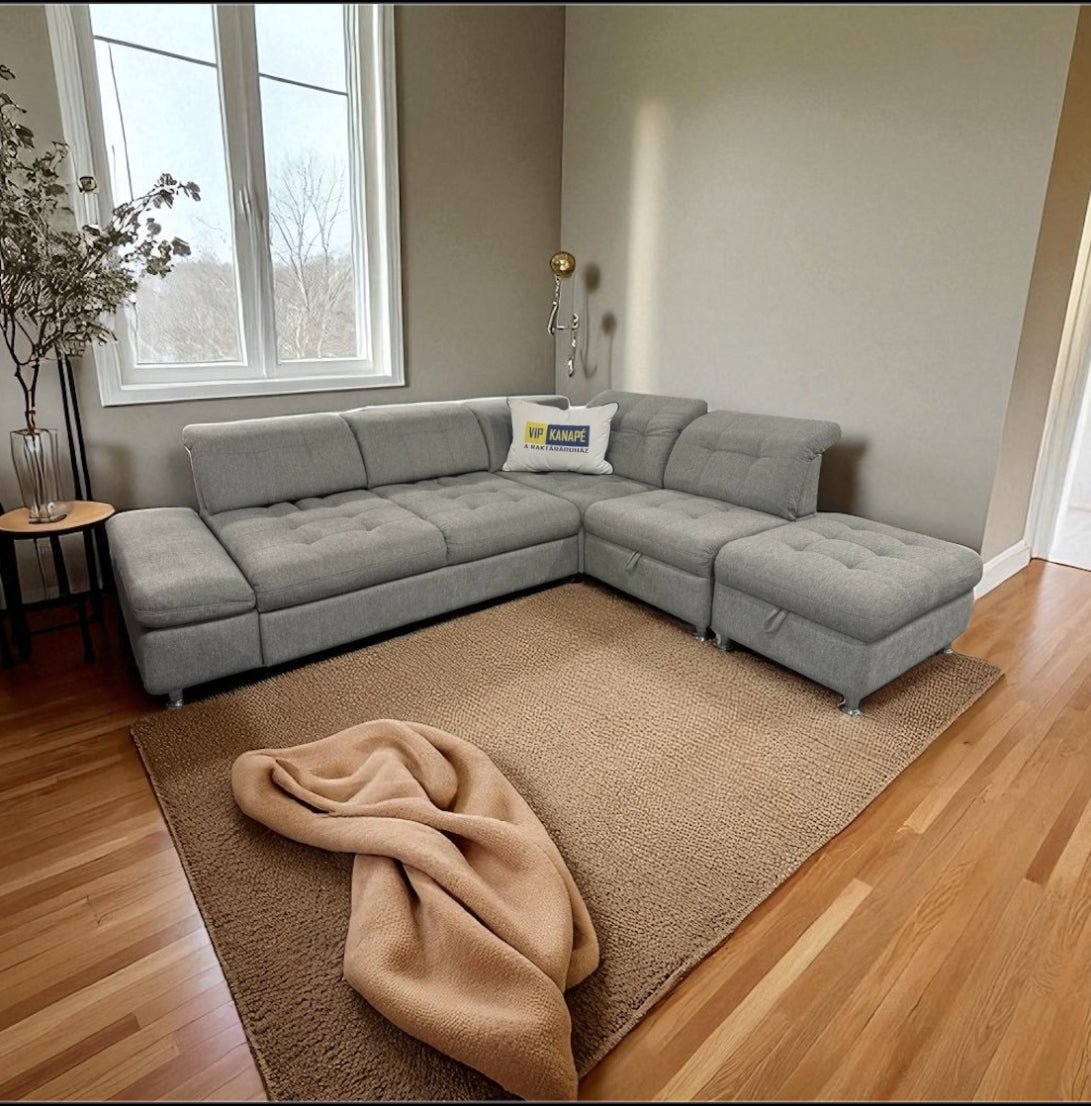 Prémium minőségű anyagok: A kanapé borítása kiváló minőségű szövetekből és tartós anyagokból készült, amelyek garantálják a hosszú élettartamot és a könnyű karbantartást. A szövetek kiválasztása nemcsak az esztétikai megjelenésre, hanem a praktikumra is nagy hangsúlyt fektet.