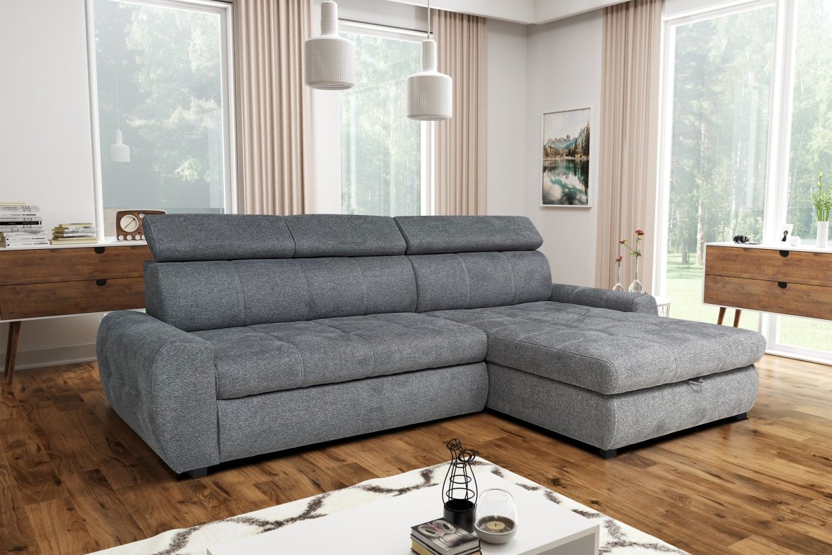 A Fenix sarokkanapé modern otthonok tökéletes társa, amely stílusos megjelenésével és praktikus megoldásaival egyaránt lenyűgöző. Ez a kompakt kanapé (méretei: 277×175×88 cm) könnyedén beilleszthető kisebb terű nappaliba is, miközben maximális kényelmet és funkcionalitást biztosít.