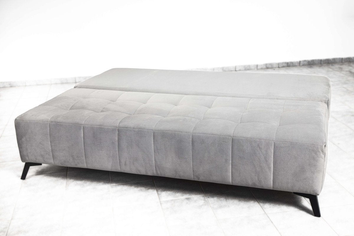 A kanapé 207 x 100 cm, fekvőfelülete 155 x 207 cm. Nyitásakor a háttámlát kell ledönteni, így kapunk plusz felületet, amin kényelmesen elfér egy ember alváskor. A bútornak nincsenek karfái, így azok nem zavarják a pihenést – nyugodtan el lehet nyújtózni hosszában az ágyon. Jár viszont a bútorhoz két nagy díszpárna, amelynek nekidőlve komfortos az ülés, a tévénézés.