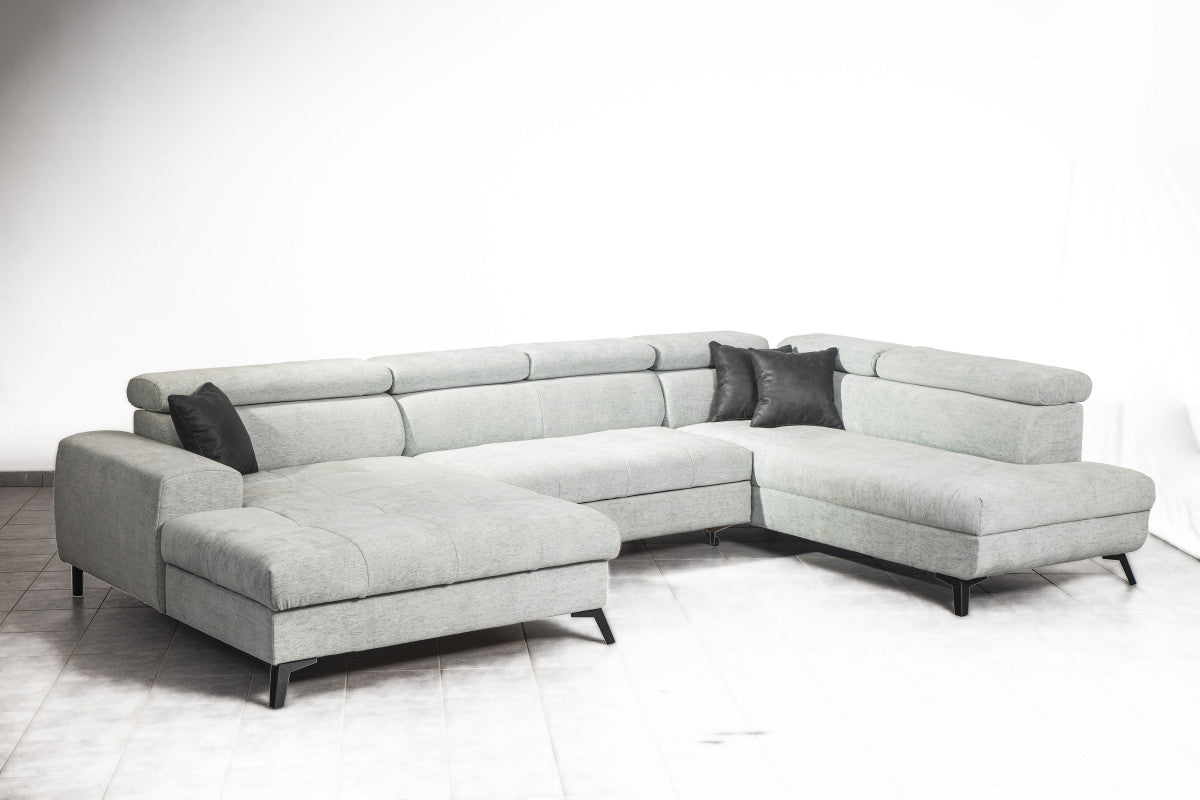 Modern U alakú ülőgarnitúránk ,a letisztult ,fiatalos minimal design jegyében készültek .Méreteiből adódóan több embernek is helyt ad.További előnye az elegáns és dekoratív állítható fejtámlák ,amelyek a garnitúra egyediségét növelik.
