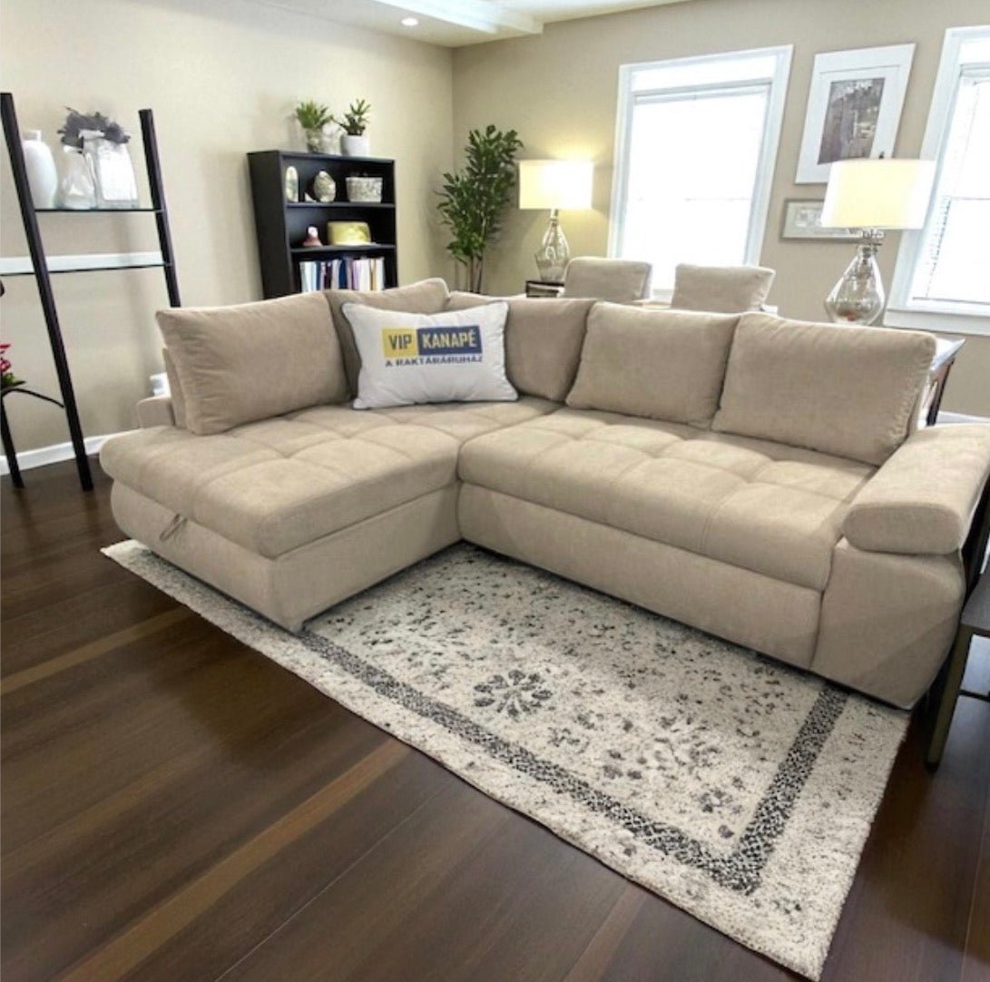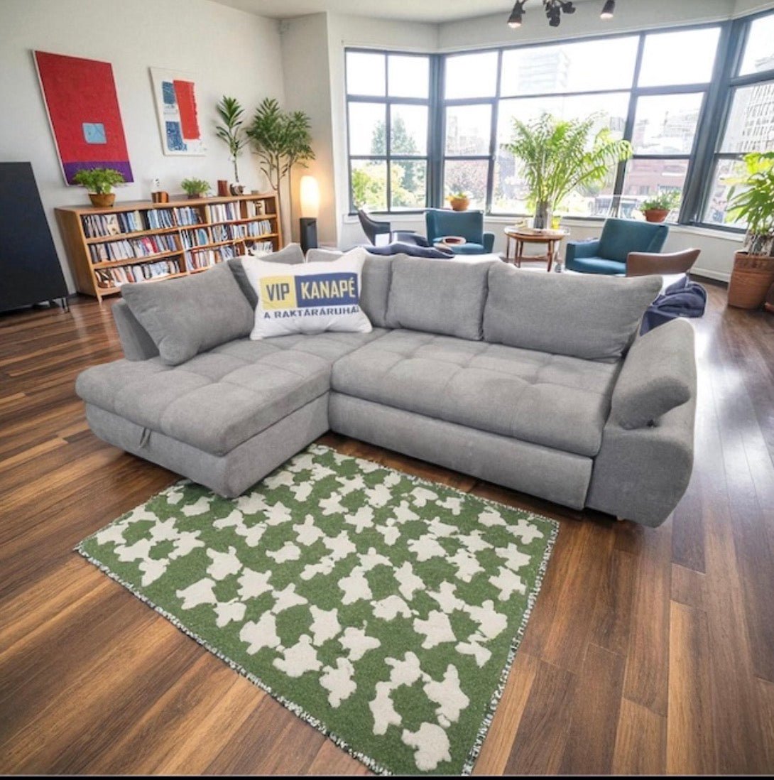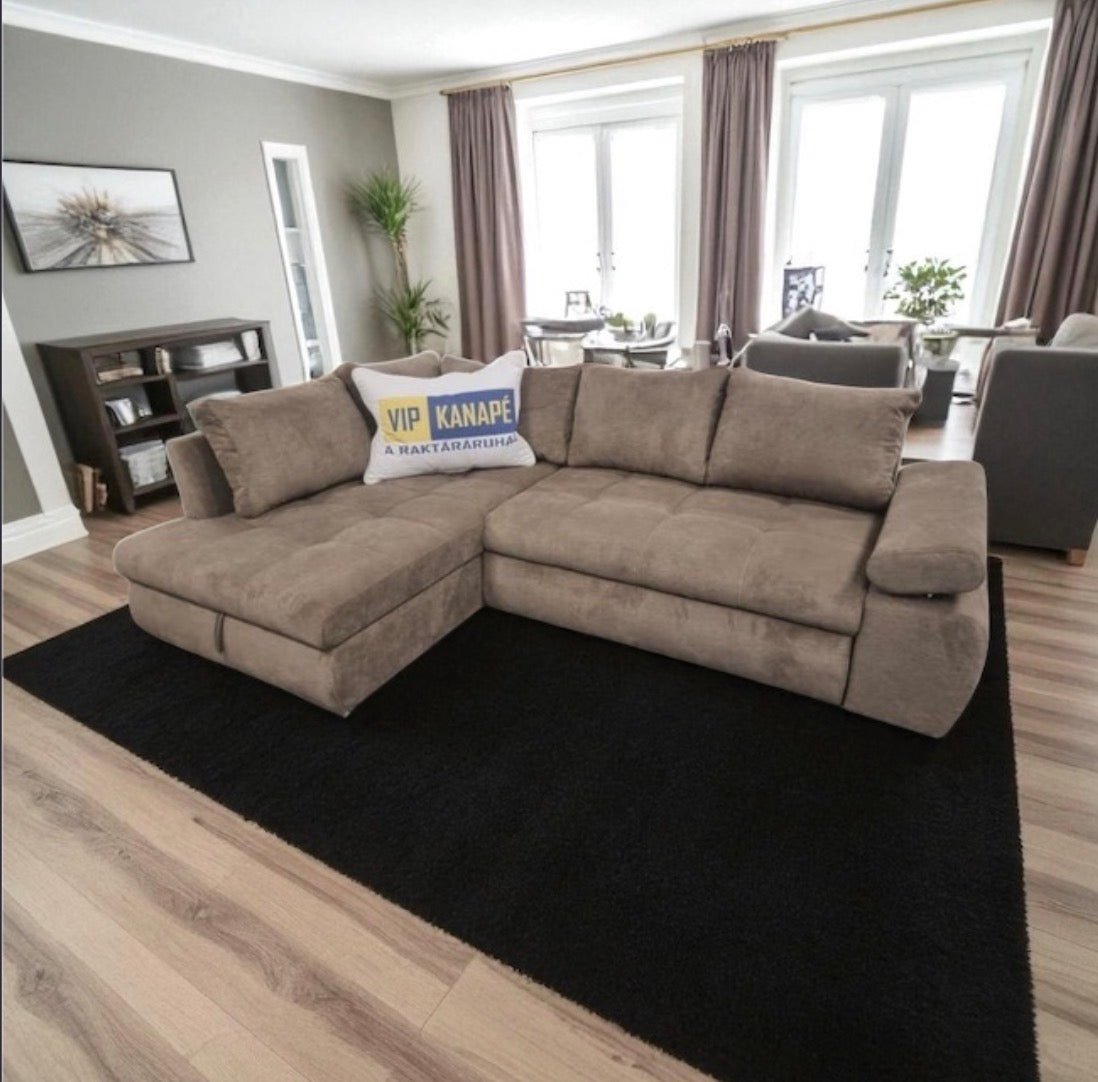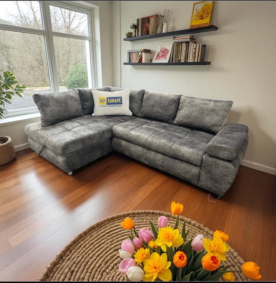 A Sky sarokkanapé ágyneműtartóval is rendelkezik, ami praktikus megoldás a ritkábban használt textíliák tárolására. Szükség esetén pillanatok alatt ággyá alakítható, így a 160×220 cm-es fekvőfelület kényelmes alvóhelyet biztosít akár vendégek számára is.