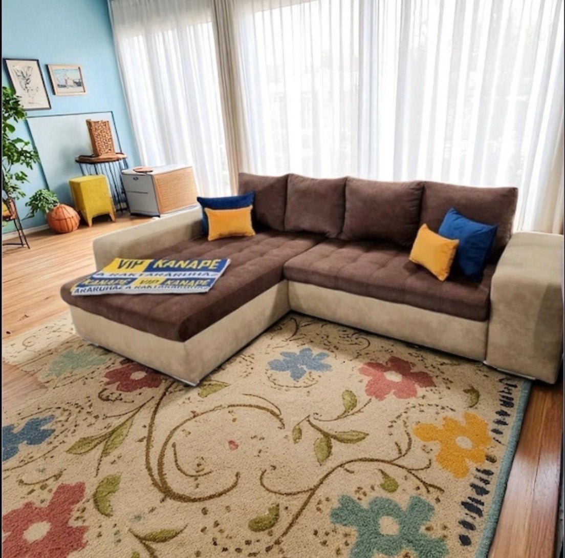Exkluzív kivitelezésű, letisztult vonalvezetésű sarokkanapé. Ággyá alakítható kivitelben is rendelhető, nagy fekvőfelülete akár két személy számára is elegendő helyet biztosít. Harmonikus színösszeállítása a kifinomult ízlés tükre, tulajdonosa számíthat a vendégek elismerő pillantásaira. Az elsőrangú alapanyagok, a precíz, hozzáértő kivitelezés teszi örök darabbá otthonában.