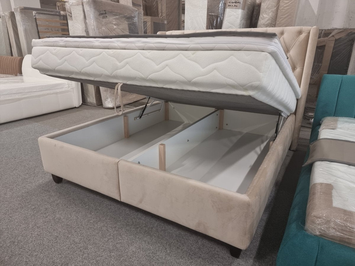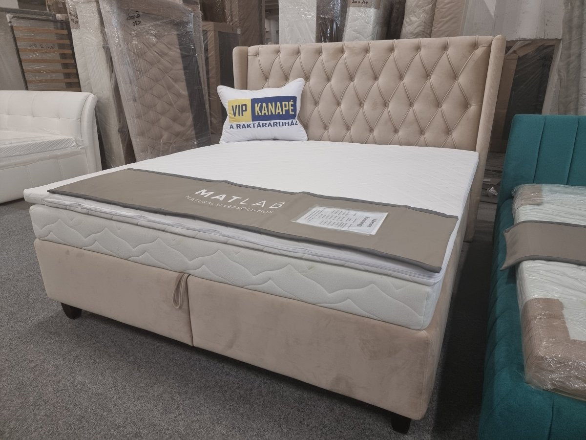 A betétes –ágyneműtartós modell beépített rugós matraccal készül 140×200 vagy 160×200 vagy 180x200cm fekvőfelülettel.